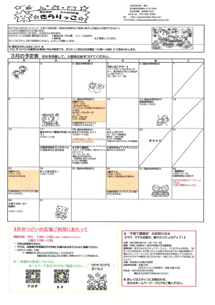 ☆3月の‘子育て講演会’のお知らせ☆