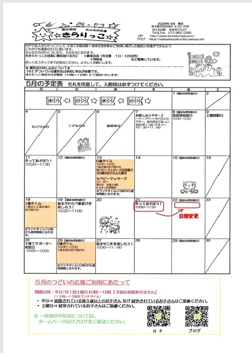 5月のつどいの広場ご利用にあたって